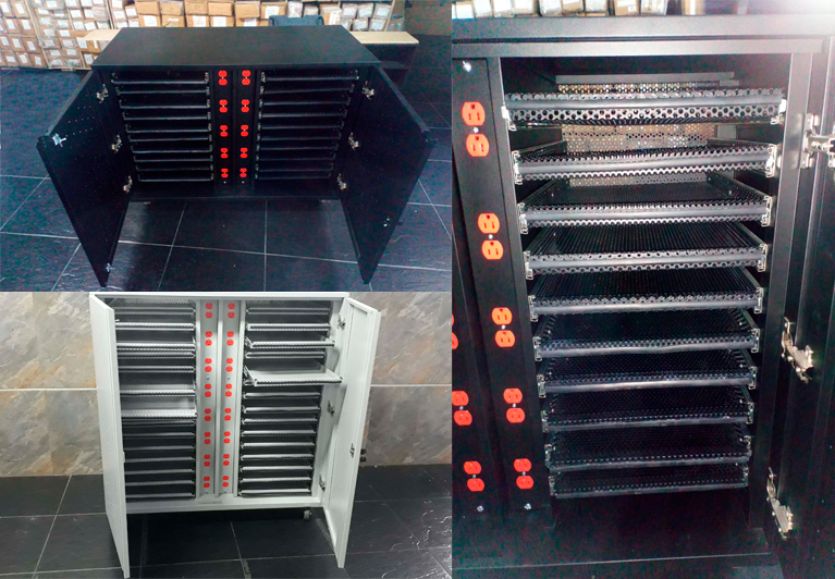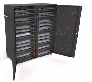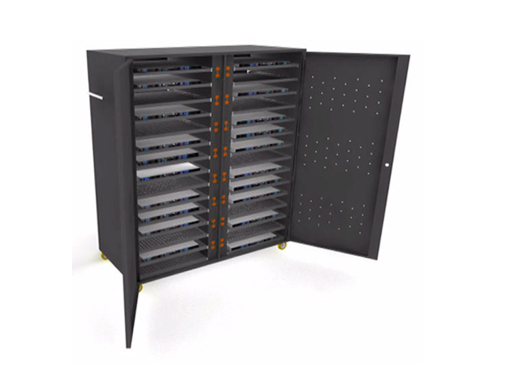 Su diseño cuenta con 30 bandejas extraibles mediante rieles perfectos para la sobreposicion de laptops o computadores portatiles de forma practica y sencilla, ayudando a prolongar en una forma signicativa la vida util del dispositivo brindandole maxima proteccion.