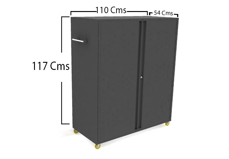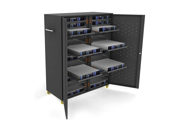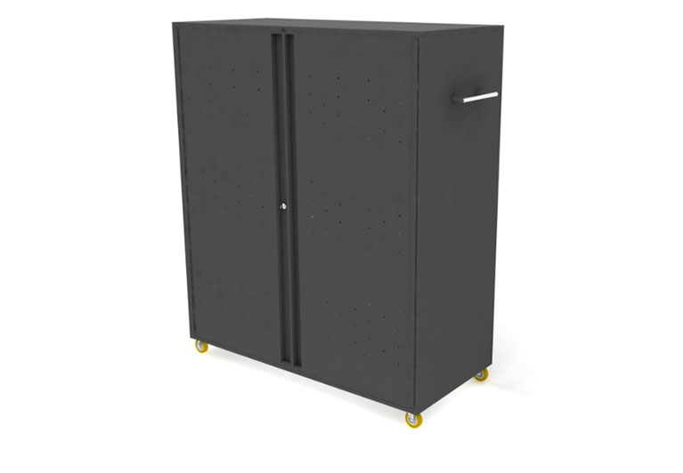 Mueble tipo armario con estructura en lamina de acero cold rolled de alto impacto para brindar una mayor seguridad y proteccion a cada uno de los dispositivos almacenados dentro.