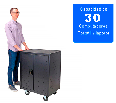 Perfecto para aquellos lugares donde se vea como necesidad transportar y cargar 30 laptops al mismo tiempo permitiendo tenerlos a punto cuando se necesite usar en un momento indicado, ademas de esto guardandolos bajo llave evitando perdidad o robos.